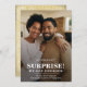 Compartilhe suas boas notícias com este elemento elegante de noivado fotográfico. A frente apresenta sua foto de casal com Surpresa, nós ficamos comprometidos!", anunciando em um texto branco ousado. Não se preocupe, há um exagero especial na foto, então seu texto mostrará - não importa quais sejam as cores da sua foto. Seus nomes e uma breve mensagem das notícias especiais. A parte de trás é um padrão de faixa de ouro moles, em relevo, para adicionar uma vibração lux. Para uma aparência mais minimalista, você pode excluí-la. Clique no botão Mensagem para me contactar facilmente para obter ajuda. Parabéns no seu noivado!