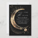 Este convite para chás de fraldas, encantadoramente intitulado "Estamos sobre a Lua", mistura alegria e maravilha com o seu espantoso design que inclui uma lua crescente metálica, estrelas cintilantes, constelações distantes, galáxias misteriosas e maravilhas celestes. Ela reflete perfeitamente seu gosto sofisticado, a profundidade de sua alegria, e a imensa felicidade que esta ocasião traz.