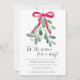 Convide familiares e amigos para o seu Chá de fraldas de Natal com este convite festivo. É decorado com uma mistura verde-aquática, uma fita vermelha, e diz "Esta é a estação para um bebê!" na tipografia da na moda. Facilmente personalizável. Original Watercolor © Michele Davies.
