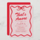 Esta moda, retrô, e moderna chá de panela de verão italiano "Isso é Amore" apresenta um fundo rosa com arco e uma moldura ondulada em vermelho. O verso apresenta um fundo vermelho
