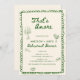 Apresentando nosso encantador "Isso é mais", italiano inspirou o Janto Reersal Convite, projetado para estabelecer o palco de uma celebração cheia de amor e riso. Este encantador convite apresenta uma fonte divertida e verde que exude um charme manuscrito peculiar, capturando perfeitamente o espírito alegre da ocasião. A frente do convite é enfeitada com um quadro branco desenhado à mão, acrescentando um toque de elegância artística que faz cada carta se sentir exclusivamente pessoal. O convite "Isso é Amore" irradia calor e romance, fazer que seja a escolha ideal para um casal que aprecie os pequenos detalhes. A bela matiz verde pop contra um fundo macio e cremoso, criando um contraste surpreendente que certamente encantará seus convidados. A letra escrita à mão adiciona um talento casual, mas sofisticado, convidando amigos e familiares a se juntarem ao prazer enquanto celebram a noiva e o noivo. Compartilhe o amor e a alegria deste dia especial com o nosso Convite para Janto de Ensaios "Isso é Mais", onde todos os detalhes foram elaborados para tornar a sua celebração verdadeiramente inesquecível.