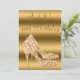 Os convites feitos sob encomenda personalizados elegantes da celebração do partido de aniversário de 40 anos decorados com imagens elegantes sparkly elegantes dos calçados dos estiletes do ouro dos saltos altos e chique, chamativo à moda, brilho, sparkles, os diamantes digitais que bling imagens impressas de notas musicais das jóias em um fundo ondulado glamoroso do inclinação do ouro do efeito projetam. Este bonito, na moda, divertimento, moderno convida para partidos de aniversário de 40 anos das mulheres é decorado/imprimido em ambos os lados. Sofisticado, o rico convida perfeito para o comensal e os eventos da dança. O verso do cartão tem pérolas bonitas e imagem da esteira do laço. Pérolas e esteira do laço pelo ©Hazel Kinvig-Paul www.design-a-dream.co.uk.
