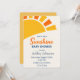 Um design de sol limpo e moderno com um motivo de sol ousado e tons dourados quentes. O layout contemporâneo cria uma atmosfera brilhante e equilibrada, perfeita para celebrar uma nova chegada. Este tema de sol combina simplicidade com calor radiante, oferecendo uma estética elegante e edificante inspirada nas tendências americanas atuais de chá de bebê.