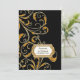 NOTA: esta é uma imagem impressa em formato plano, não há joias, camadas sobre-elevadas ou elementos metálicos dourados. COLOR PALETTE: preto, branco macio e cremoso com falso ouro metálico brilho DESIGN COLLECTION: Inspirado por Old Hollywood e sua época de glamour dos loucos, este conjunto de convites para o casamento é perfeito para elegantes, sofisticadas e modernas celebrações de casamento. Um padrão clássico, bonito e girando estilo damask de folha foi desenhado graficamente para parecer um design de rendas bordadas em ouro com borda prateada com uma fivela de ouro que tem uma borda de diamante sobre a falso brilho. Um layout de tipografia contemporâneo para o seu texto de convite e informações atualiza este design de retrato vintage. Um design maravilhoso, único e bonito para a noiva mais discriminadora.