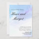 Convite de Casamento em Estilo de Script Fluido com Aquarela Azul Pastel e Roxo