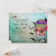 Estilo de Tatuagem O crânio de Muerte e Flourish Convidam. Um convite para o casamento do Sugar Skull no Dia De Los Muertes, estilo de tatuagem urbana e hip. Apresenta um crânio de Muerte, coloridamente decorado, frequentemente chamado de Calaveras, floresce e folhas, flores e borboletas. O fundo é um olhar azul/verde em apuros com uma dica de escrevendo! Criado e copyright Julie Farrell 2011. Por favor, não copie nem reproduza fora do Zazzle por legalidades de direitos autorais. POR FAVOR, VERIFIQUE MINHA LOJA PARA COORDENAR RSVPS E OUTROS ITENS DE CASAMENTO COM ESTE DESIGN.