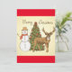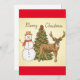 Uma cena de natal alegre de estilo vintage com uma árvore, um boneco de neve e uma rena. Este design parece realmente eficaz nestes Convites