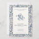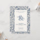 Celebre seu dia especial com este elegante design de casamento floral, com um clássico esquema de cor azul floral e creme. A intrincada fronteira floral adiciona um toque de sofisticação do eterno, perfeita para casais que procuram evocar uma estética tradicional e graciosa para o seu grande dia. Ideal para casamentos de jardim ou cerimônias de temas antigos, esta design dá o tom para uma celebração romântica e íntima.