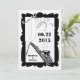 Certifique-se de que seus amigos e entes queridos estejam lá para o seu casamento com esses cartões de aviso com antecedência "Save the Date" em estilo jazz retrô em preto e branco. Os cartões são no estilo de um pôster retrô e apresentam um saxofone com notas musicais, dois copos brindando e a frase caprichosa "dance eat drink celebrate / live love laugh sing" para adicionar um toque decorativo.