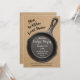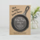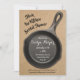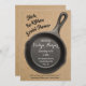 Este convite de moda é ideal para um chá de panela com o tema Stock the Kitchen. Ele apresenta um grande ferro fundido em um fundo de papel rústico. A fonte casual no topo adiciona uma aparência moderna. O resto da informação está incluído dentro do ferro fundido. Este design é ideal para uma noiva moderna.