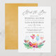 Convites de festa de noivado/cha de casal/ensaio de casamento com buquês florais em aquarela de praia tropical projetados para serem rápida e facilmente personalizáveis para os detalhes do seu evento.