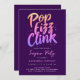 Convite Estouro de Pop Tilintar Roxo e Rosa Caligrafia Scr