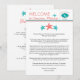Divirta-se com o seu casamento temático de destino e adicione esta Carta de Boas-vindas aos Convidados de Casamento à bolsa de brindes dos convidados com informações adicionais sobre o itinerário do casamento no verso do cartão. Mapa do México com Três estrelas-do-mar nas cores AZUL-TURQUESA e CORAL. Para dúvidas sobre alterações de design personalizadas pelo designer independente, por favor, envie um e-mail para paula@labellarue.com ANTES de personalizar ou fazer um pedido.