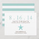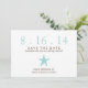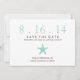 Elegantes anúncios de salvar a data perfeitos para um casamento com tema de verão ou destino tropical apresentam uma bela ilustração de uma estrela-do-mar e estão disponíveis em muitas variações de cores. Visite nossa loja para mais opções de cores e produtos correspondentes.