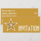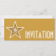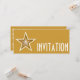 Design moderno com uma estrela dourada e branca "brilhante" em um fundo amarelo escuro. Convite com um design personalizável para você personalizar com seu próprio texto, imagens e ideias. Por favor, note que esta é uma imagem impressa criada usando fotografias originais e técnicas digitais, não brilha nem contém brilhos reais.