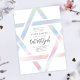 Estrela moderna de David Pastel Bat Mitzvah Invitation apresenta um esboço exclusivo e moderno de Star de David em um belo efeito holográfico em torno de seus detalhes de evento.