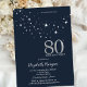 Estrelas brancas simples em um fundo azul. Todo o texto é ajustável e fácil de alterar para as necessidades da sua festa.