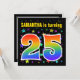 Este design divertido, vibrante e entusiasmante apresenta um padrão colorido inspirado no campo estelar, junto com o número "25" tendo um espectro multicolorido como o arco-íris ou padrão de gradiente. O nome na frente pode ser personalizado. A parte traseira apresenta detalhes personalizáveis sobre a parte. Convites de festas de aniversários como este podem ser enviados para convidar convidados para uma festa de aniversário que se realiza para celebrar o vigésimo quinto aniversário de alguém. [~Z0000349]