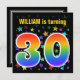 Este design divertido, vibrante e excitante apresenta um padrão inspirado por estrelas coloridas, juntamente com o número "30", que tem um espectro de inspiração multicolorido no arco-íris ou um padrão de gradiente. O nome na frente pode ser personalizado. A parte traseira apresenta informações personalizadas sobre a parte. Convites de festas de aniversários como este podem ser enviados para convidar convidados para uma festa de aniversário que comemora o trigésimo aniversário de alguém. [~Z0000349]