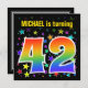 Este design divertido, vibrante e excitante apresenta um padrão inspirado por estrelas coloridas, juntamente com o número "42", que tem um espectro de inspiração multicolorido no arco-íris ou um padrão de gradiente. O nome na frente pode ser personalizado. A parte traseira contém informações personalizadas sobre a parte. Convites de festas de aniversários como este podem ser usados para convidar convidados para uma festa de aniversário que está sendo realizada para comemorar o quarenta segundo aniversário de alguém. [~Z0000349]