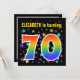 Este design divertido, excitante e vibrante apresenta um padrão colorido de estrelas, junto com o número "70", que possui um espectro multicolorido como o arco-íris ou padrão de gradiente. O nome na frente pode ser personalizado. A parte traseira contém detalhes personalizados sobre a parte. Convites de festas de aniversários como este podem ser enviados a potenciais convidados para uma festa de aniversário que comemora o 70º aniversário de alguém. [~Z0000349]