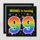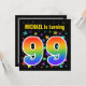 Este design divertido, vibrante e entusiasmante apresenta um padrão inspirado por estrelas coloridas, juntamente com o número "99", que tem um espectro de inspiração multicolorido no arco-íris ou um padrão de gradiente. O nome na frente pode ser personalizado. A parte traseira contém informações personalizadas sobre a parte. Convites de festas de aniversários como este podem ser usados para convidar convidados para uma festa de aniversário que está sendo realizada para comemorar o 99º aniversário de alguém. [~Z0000349]