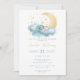 O chá de um bebê com o tema "Twinkle Twinkle" é um convite para o bebê com o menino azul e a lua ouro com estrelas.