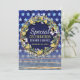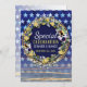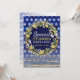 Tons de cor azul e amarelo. Estrelas de aquarelas em azul vibrante com listras de ouro urbanas, juntamente com flores amarelas do botão e coroa floral pansy. Modelo de convite com espaço para o seu texto em frente e atrás. | feito com amor - ▪ por Webgrrl.biz