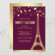 Convite Estrelas de folhas douradas Torre Eiffel Cor-de-ro