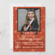Estrelas de ouro vivas e divertidas com fundo vermelho num convite de festas de brunch de graduação. Substitua e personalize a foto do seu formando e personalize todos os detalhes do seu formando e da sua festa no início deste convite. O reverso desta carta tem um fundo preto dramático com estrelas douradas.