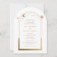 A Lua Branca Dourada Celestial Estende A Astronomia Espacial Casamento Invisiz o sol dourado, a lua e as estrelas com uma estrutura dourada sobre fundo branco. Dentro é a sua informação de convite de casamento. Personalize editando o texto nas caixas de texto. Projetado para você pelo Evco Studio www.zazzle.com/store/evcostudio