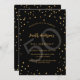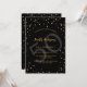 Um convite de aniversário glamouroso para ele e para ela. Um fundo preto decorado com estrelas douradas falsas. Personalize e adicione um nome e detalhes da parte. Texto colorido do ouro. Número de idade como marca d'água. Fundo: fundo preto e estrelas ouros.