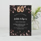 Um fundo preto clássico, decorado com estrelas douradas rosa. Personalize e adicione um nome e detalhes da parte. O número é escrito com um script de estilo de balão.