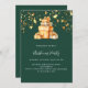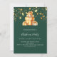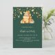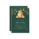 Um convite para uma festa de Natal. Um fundo verde. Decorado com estrelas ouros e uma pilha de presentes. Personalize e adicione os detalhes. Texto branco.