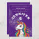 Convite Estrelas do arco-íris Roxo do Unicórnio Roxo