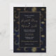 Convite Estrelas Douradas da Lua Solar Celestial Azul