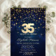 Convite Estrelas Douradas Elegantes Marinho azul 35ª Festa