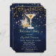 Convite Estrelas Douradas Elegantes Marinho de Champanhe R
