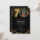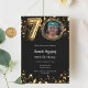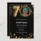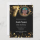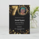 Um convite para fotos moderno e na moda para uma festa de aniversário 70. Um fundo preto clássico, decorado com estrelas douradas falsas. Personalize e adicione os detalhes da sua festa.