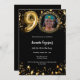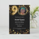 Um convite para fotos moderno e na moda para uma festa de aniversário 90. Um fundo preto clássico, decorado com estrelas ouros. Personalize e adicione os detalhes da sua festa.