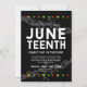 Celebre o feriado do dia 12! Esses convites têm uma design mínima, mas significativa, de dezenove temas. No fundo estão correntes quebradas transparentes para simbolizar a liberdade e o verdadeiro propósito do Feriado de Junta. No topo e no fundo está uma linha de estrelas representativas dos Estados Unidos. Todos os elementos deste item são desbloqueados e personalizáveis, incluindo a cor preta sólida do fundo. Com isso em mente, divirta-se sendo criativo e fazer seu.