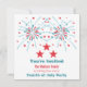 Estrelas e fogos de artifício negros e brilhantemente patrióticos Convidam com um par de gráficos de fogos multicoloridos e minúsculas estrelas vermelhas. Este simples mas encantador convite para o Dia da Independência é a escolha perfeita para a reunião de 4 de julho que você vai receber este ano! Fácil de personalizar, basta adicionar os detalhes da sua diversão nos campos fornecidos.