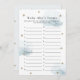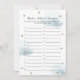 Este cartão de chá de fraldas "Itens do Bebê" bonito apresenta um fundo branco com estrelas brilhantes douradas falsas e nuvens azuis claras e fofinhas. O verso apresenta padrões de estrelas brilhantes douradas em um fundo azul claro. Altere a cor de fundo e personalize para suas necessidades. Você pode encontrar mais produtos correspondentes na minha loja.