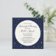 O convite romântico apresenta uma bela lua de cheio e estrelas brancas brilhantes espalhadas pelo fundo azul do céu à meia-noite. Clique para personalizar ainda mais para alterar o estilo, o tamanho ou a cor da fonte.