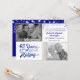 Convite de festa de aniversário de 65 anos de casamento com estrelas em azul safira e prata, apresentando um título com tipografia retrô que diz 65 ANOS EM CONSTRUÇÃO, que integra o ano do casamento dentro do design e inclui duas fotos (talvez fotos de então e agora). O verso inclui informações adicionais do convite. DICA DE FOTO: Para obter resultados mais rápidos e melhores, escolha uma foto com o assunto no meio e/ou pré-edite para um formato semelhante ao mostrado ANTES de fazer o upload. Entre em contato com o designer via Zazzle Chat ou makeitaboutyoustore@gmail.com se você gostaria que este design fosse modificado, em outro produto ou gostaria de itens coordenados.
