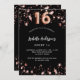 Um fundo preto clássico, decorado com estrelas douradas rosa. Personalize e adicione um nome e detalhes da parte. O número 16 é escrito com um script de estilo de balão.