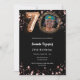 Um convite para fotos moderno e na moda para uma festa de aniversário 70. Um fundo preto clássico, decorado com estrelas douradas rosa. Personalize e adicione os detalhes da sua festa.