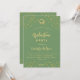 Um fundo verde sábio decorado com estrelas douradas falsas e um boné. Personalize e adicione um nome, detalhes da festa e ano. O texto Graduação e o nome são escritos com um script de estilo moderno, escrito à mão.