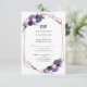 Convite Estrutura Geométrica Moderno com Flores Roxas e Do