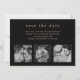 Este cartão de save the date elegante e moderno apresenta sua foto pessoal na frente, com um et al em rose gold falso conectando seus nomes. O verso tem espaço para mais 3 de suas fotos, além de informações adicionais sobre o save the date.